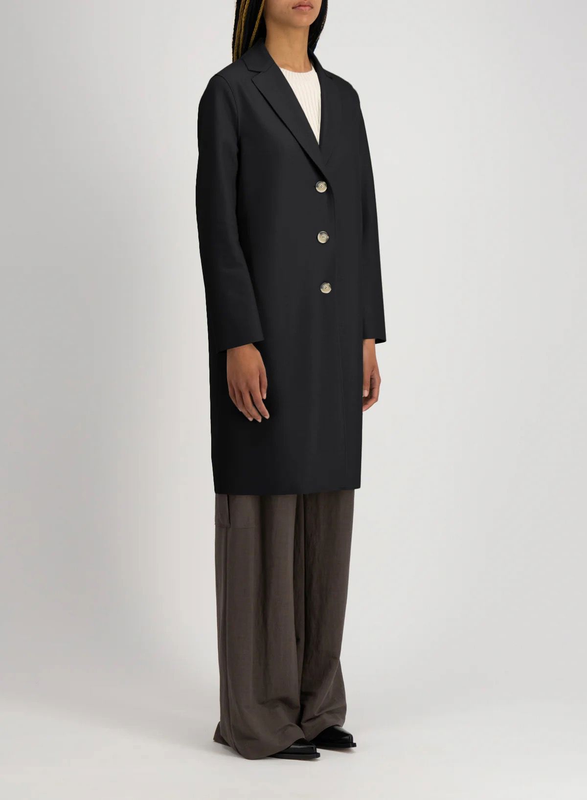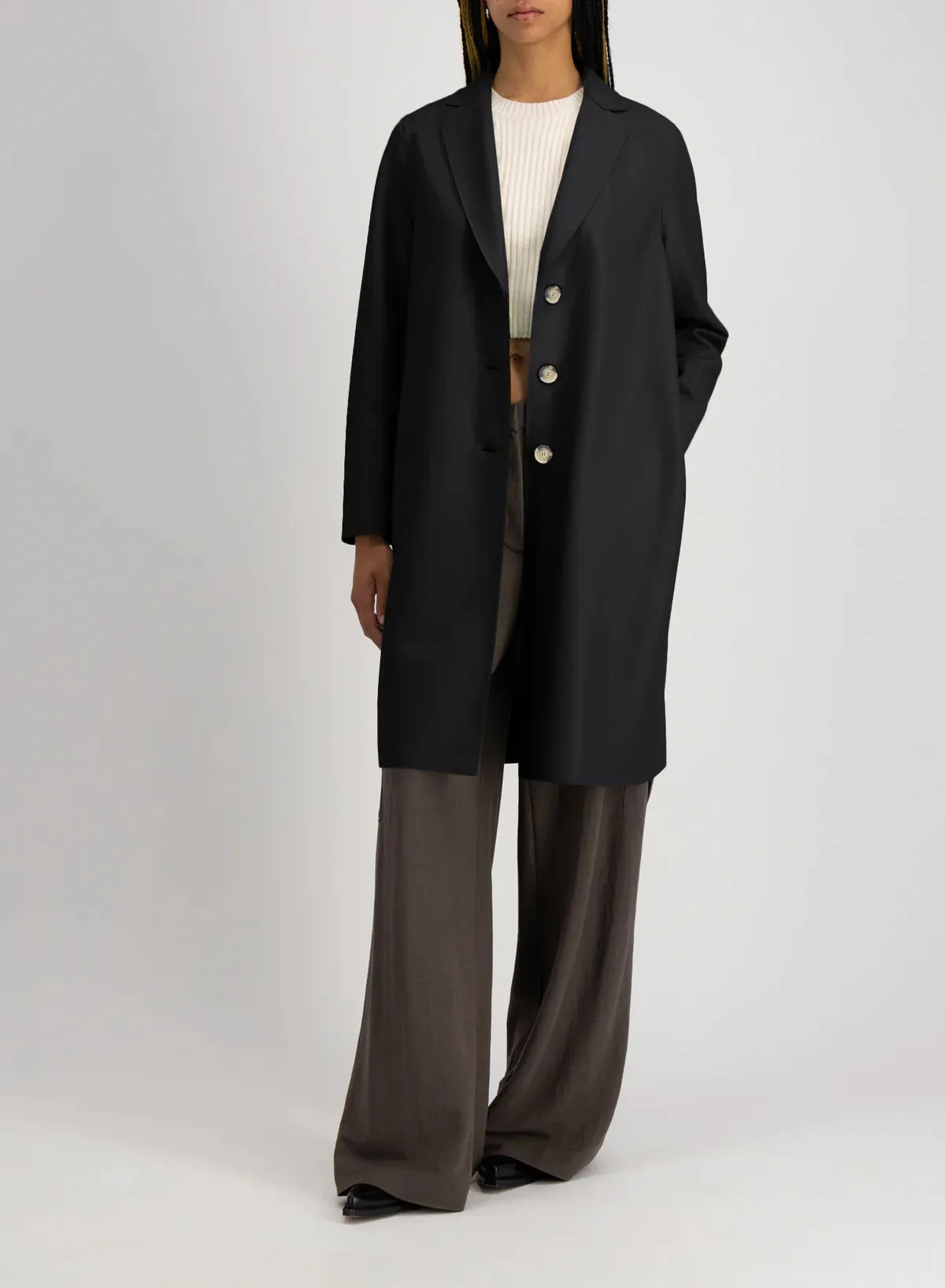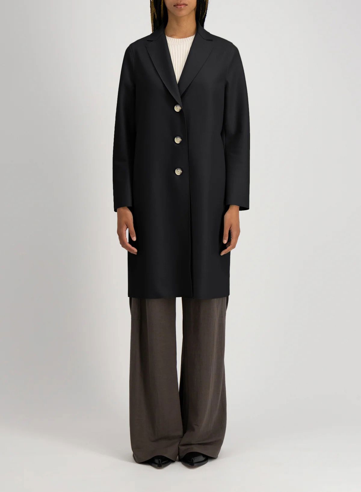Harris Wharf steht für eine cleane, reduzierte Designsprache und edle Verarbeitung. Charakteristisch für das britische Label ist die geschmeidige, verfilzte Jersey-Ware, die aus 100 % Schurwolle in Italien produziert wird. Die Jacken und Mäntel haben eine hervorragende Passform, sind ungefüttert und haben eine offene Kantenverarbeitung.